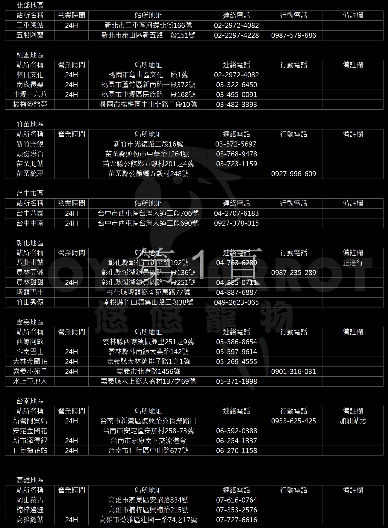 營運說明: